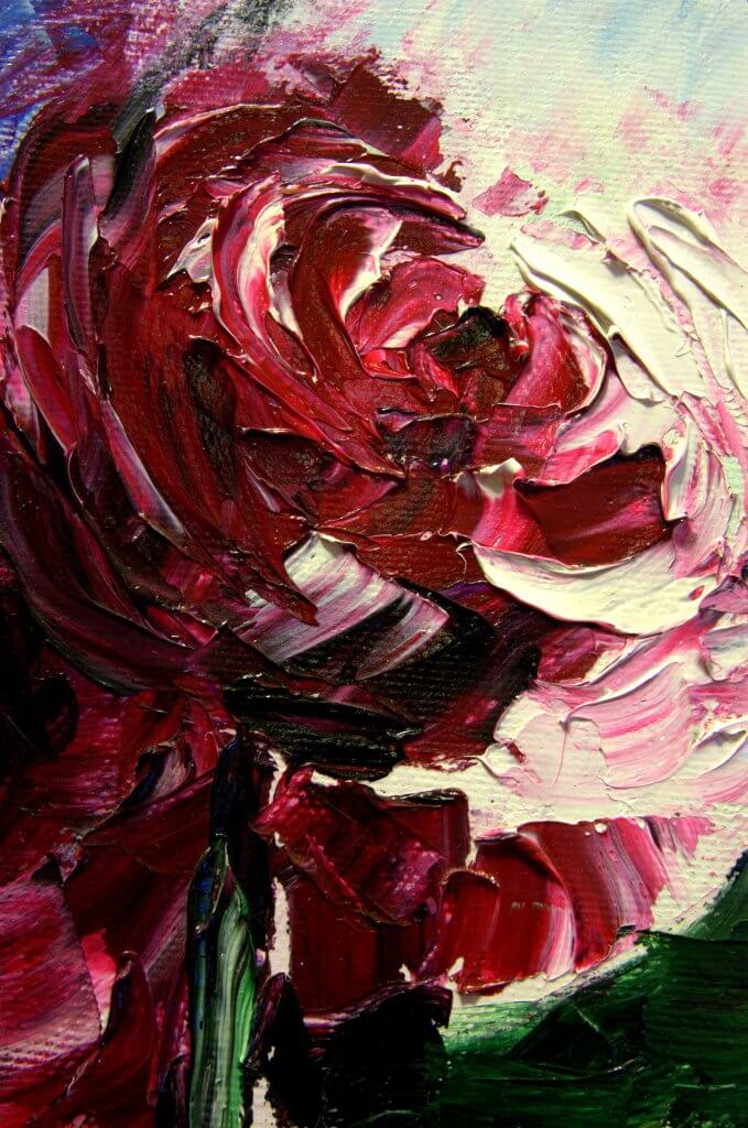 RóżaObraz „Róża” powstał w roku 2009. Namalowany jest na płótnie w technice olejnej przy pomocy szpachelki dzięki czemu charakteryzuje się grubą fakturą farby. Posiada także zamalowane boki więc nie wymaga oprawy. Obraz jest werniksowany. Rękodzieło. Kwiaty, NaturaProject Details 2009 20x40cm